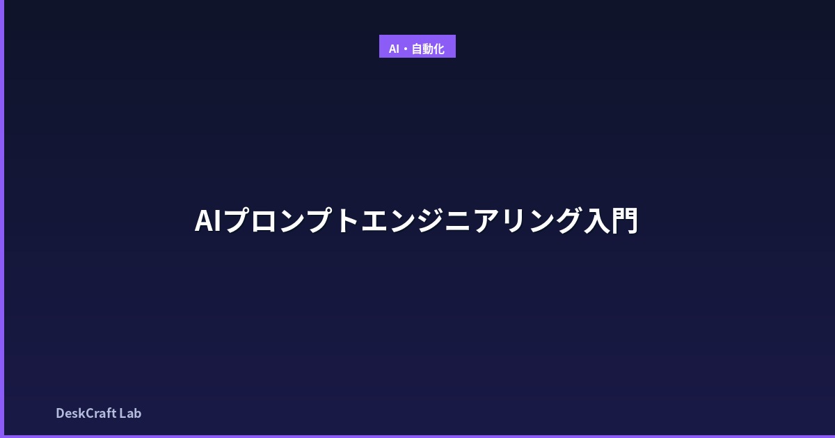 そこで本記事では、AIの能力を最大限に引き出し、出力品質を劇的に向上させるための「AIプロンプトエンジニアリング」の基本から応用までを徹底解説します。単なる指示の出し方ではなく、AIの「思考」を理解し、その特性を活かした具体的なテクニックを学ぶことで、あなたのAI活用スキルは飛躍的に向上するでしょう。この記事を読み終える頃には、あなたのAIからの出力品質が平均で10倍以上向上していることを実感できるはずです。AIとの共創を次のレベルへと引き上げるための第一歩を、DeskCraftと一緒に踏み出しましょう。