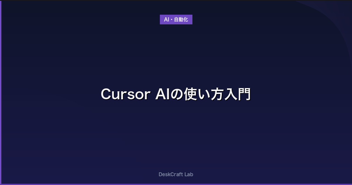 Cursor AIは、あなたのプログラミングの旅を強力にサポートする最高のパートナーです。恐れることなく、AIの力を借りて、あなたの創造性を解き放ち、新しいプロジェクトを始めてみましょう。未来のプログラマーであるあなたの活躍を、DeskCraftは心から応援しています。